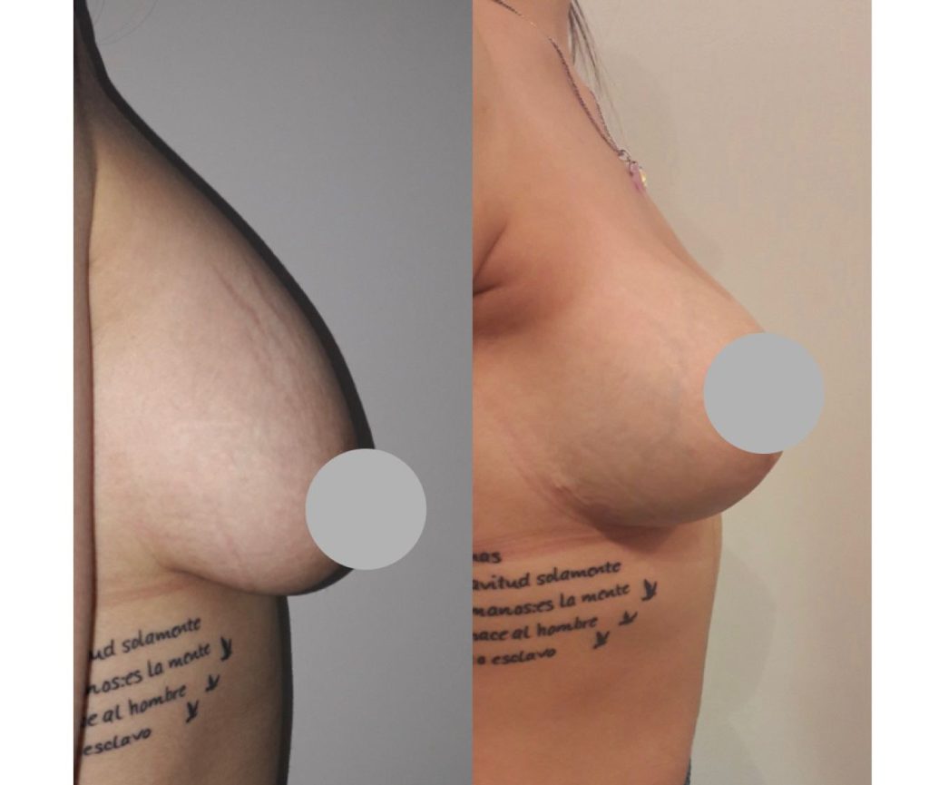 Es una deformación que se presenta frecuentemente luego de la lactancia y / o perdida de peso corporal, dando la apariencia de mamas alargadas, caídas y despobladas en la parte superior. La cirugía tiene el objetivo de retirar el excedente de piel, reubicando los pezones en una posición más alta y simétrica, logrando un aspecto juvenil.